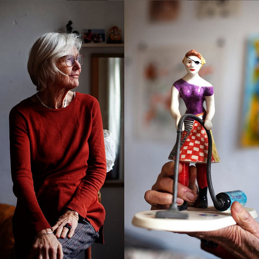 Som feministisk pionjär har hon röjt upp en stig i en manlig konstvärld. Hon rör sig stilsäkert mellan såväl konstformer som landskap och i hennes konstrum minglar heliga Birgitta med Nefertiti och Madonna. Hon arbetar för livet.