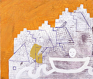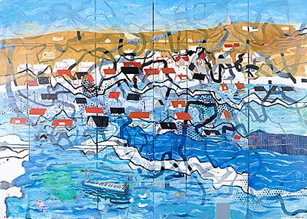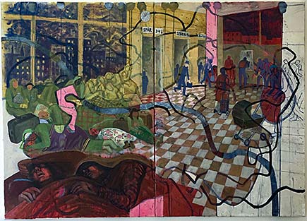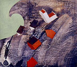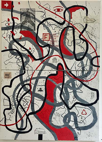 Min ateljé ligger även den i Järrestad i gamla skolan strax intill, på Näckebovägen 3. Denna målning heter Bryt upp, bryt upp! och gjordes strax innan min flytt till Berlin. Där jobbar och lever jag sen dess ungefär halva tiden.