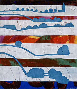 Jag vill gå tillbaka i tiden och visa vad jag gjorde för slags målningar på 90-talet. Min livssituation hade drastiskt förändrats; Jag hade lämnat Stockholm och flyttat till Österlen, till farfars systers hus vid havet. Efter uppväxten i Helsingborg hade jag flyttat till Stockholm som ung och levt ett storstadsliv med utbildning, barn och familj, intensivt verksam med min konst i tjugosex år.