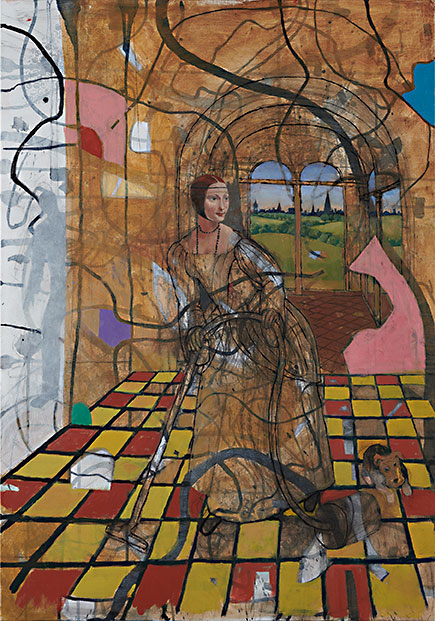 Damen med hunden, akryl/olja på duk, 2024.