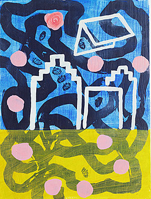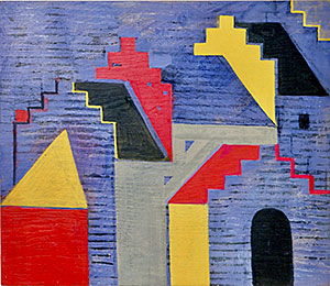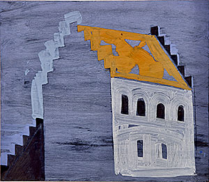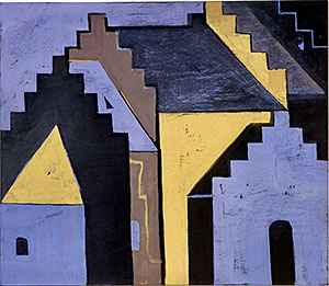 Jag fann en ateljé i en före detta skola i en grannby. Nära ateljén låg en medeltida kyrka med trappstegsgavlar. En dag när jag höll på med ett landskapsmotiv hoppade kyrkan in i målningen utan att jag förstod varför. Sen ville jag bara måla kyrkor, det hjälpte mig att komma hem.