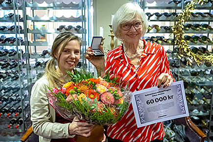 Gittan Jönsson får Sydsvenskans kulturpris av Sydsvenskans kulturchef Ida Ölmedal. Bild: Ingemar D Kristiansen