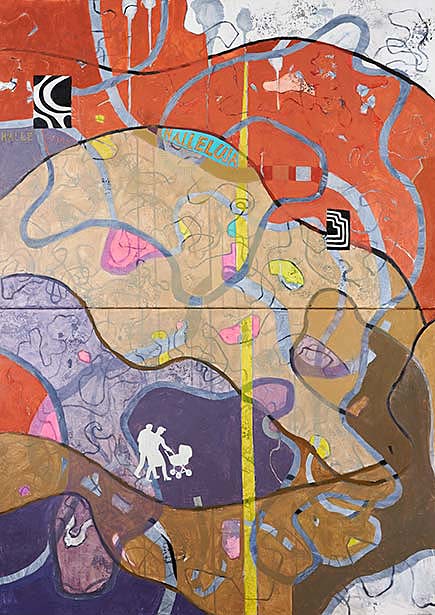 Systrar på andra sidan, akryl/olja på duk, 2024